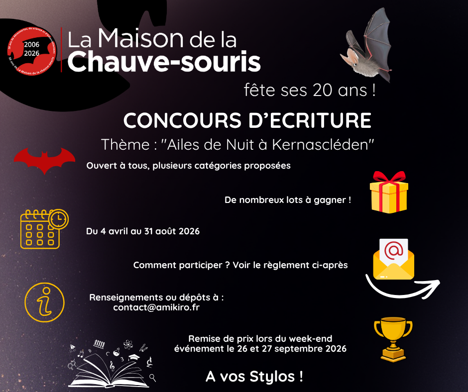 À l’occasion du 20ème anniversaire de la Maison de la Chauve-Souris, les écrivains amateurs sont invités à imaginer une histoire mettant en scène l’univers des chauves-souris.