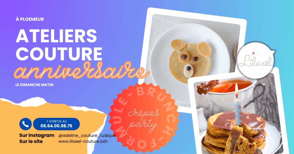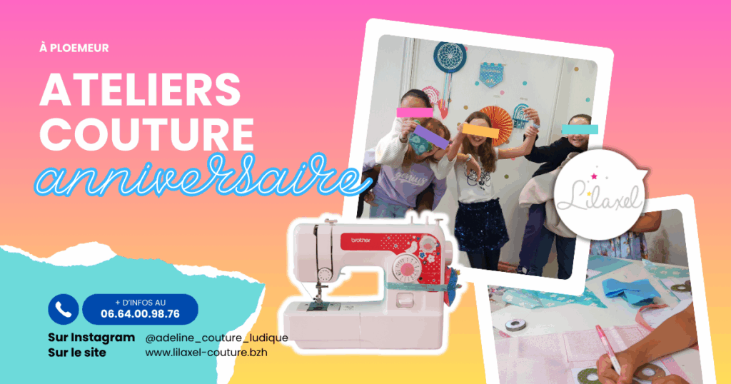 Pour une fête d’anniversaire fun, créative et originale, optez pour l’une des 3 formules anniversaire de Lilaxel pour les enfants & les ados. Vous serez accueillis dans son atelier convivial et joliment décoré à Ploemeur (Le matériel est inclus : machines à coudre, tissus, accessoires, déco et vaisselle)